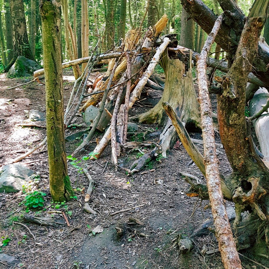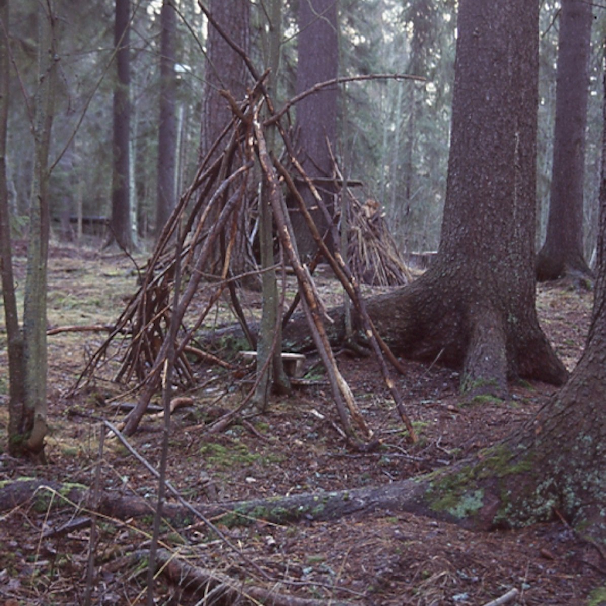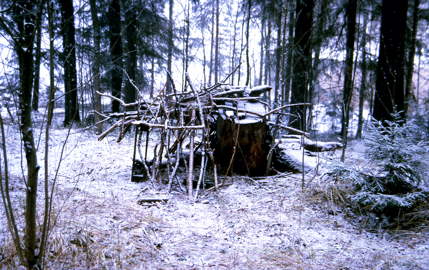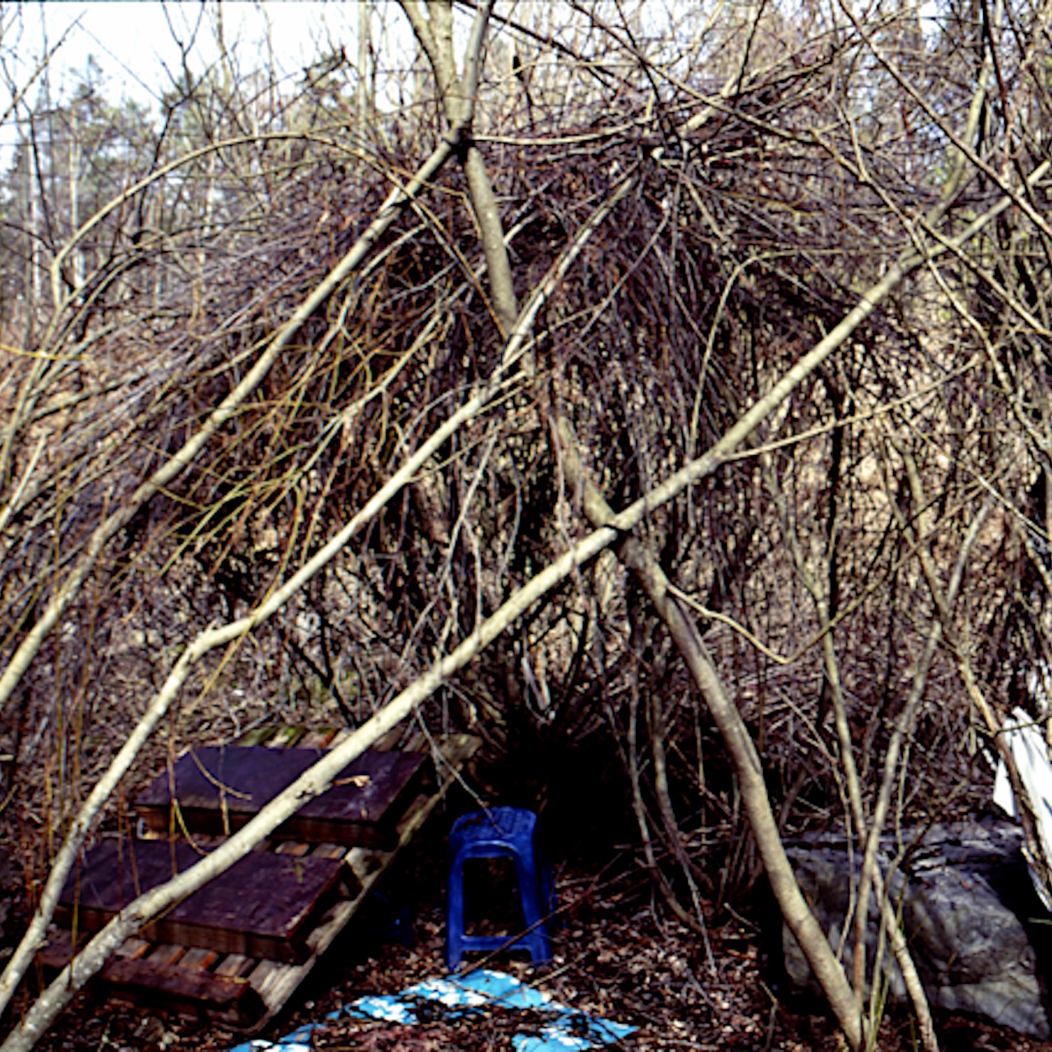 Also I have noticed that an imaginary playground can look like almost anything, so a hut/maja is a living and flexible idea, which is part of the beauty of play, which I have also noticed adults tend to dictate and say what a hut/maja is and is not, where they go wrong instantly. Adults do build temporary shacks/huts, but children don’t leave beer cans, bottles, needles, grocery trash, make campfires, have places to sleep as in real life. I do not manipulate the sites I photograph and do visit the same found huts several times as they do change and get destroyed.