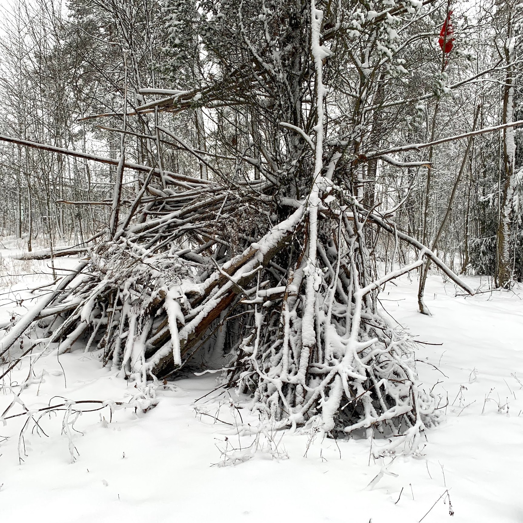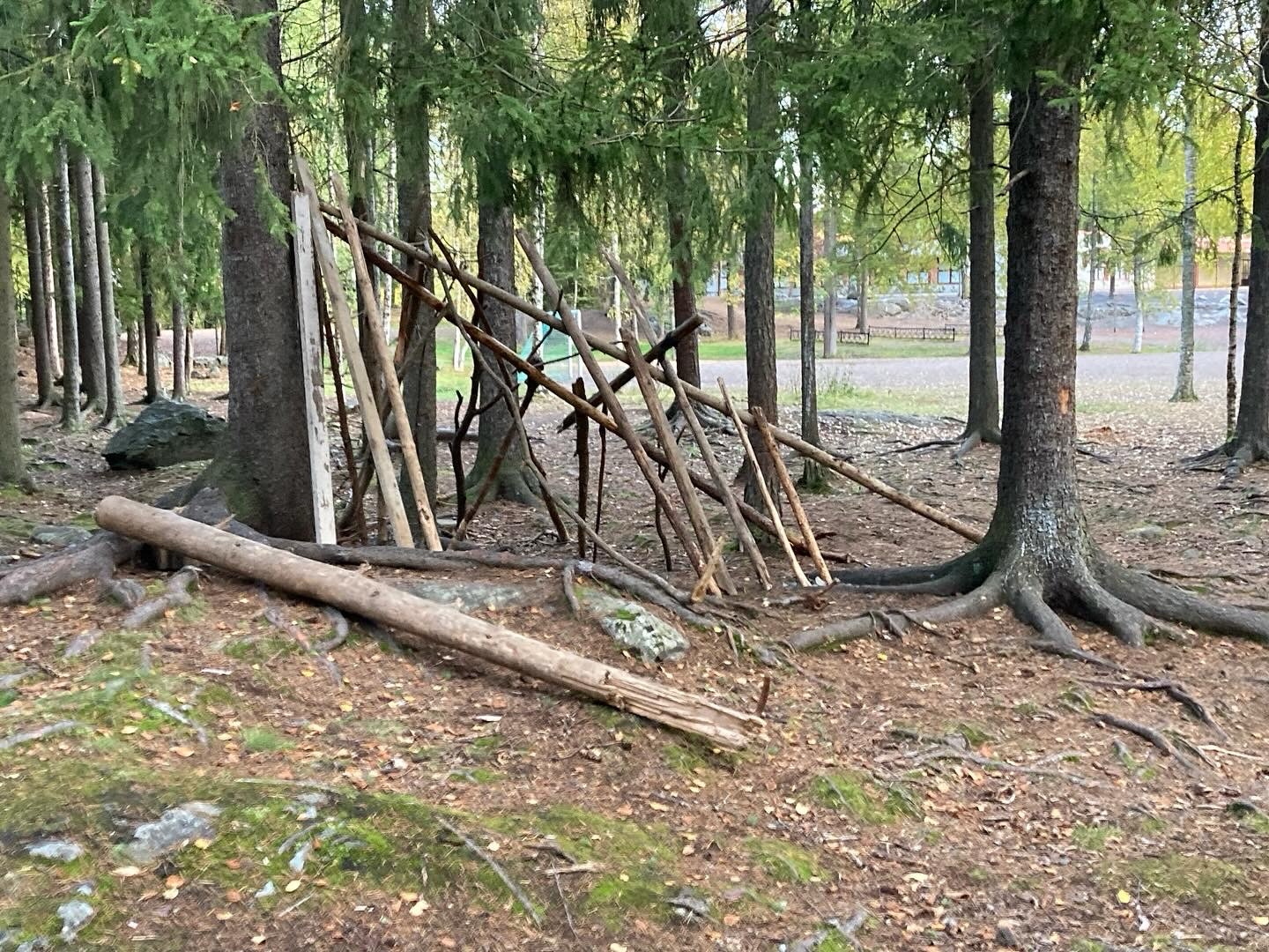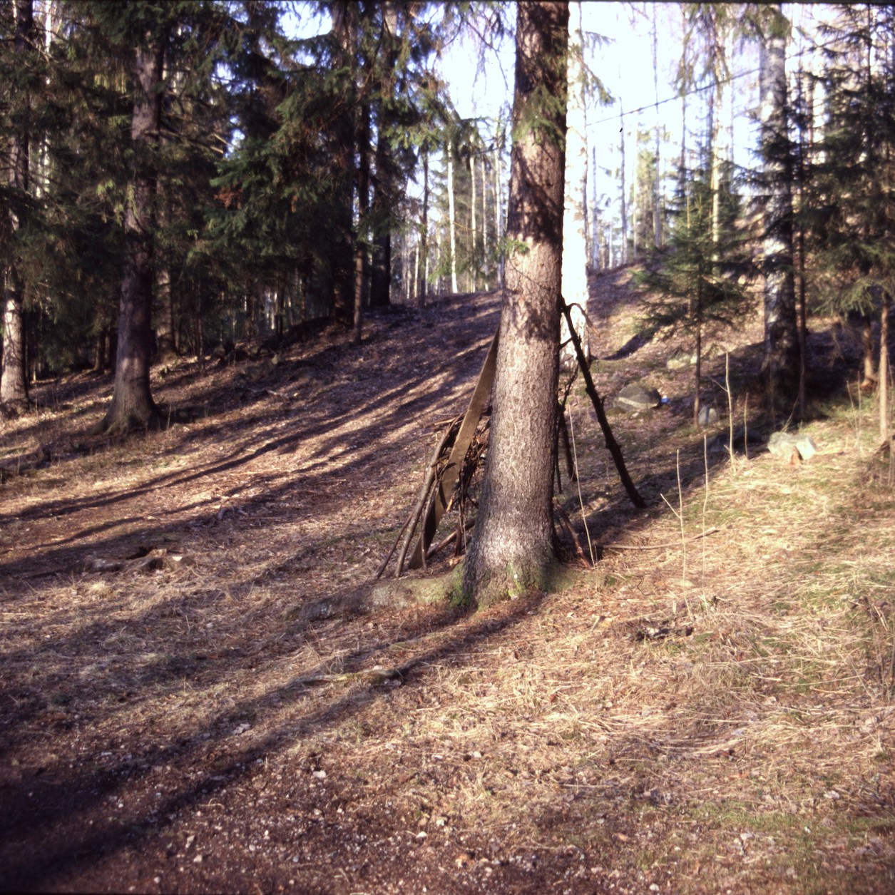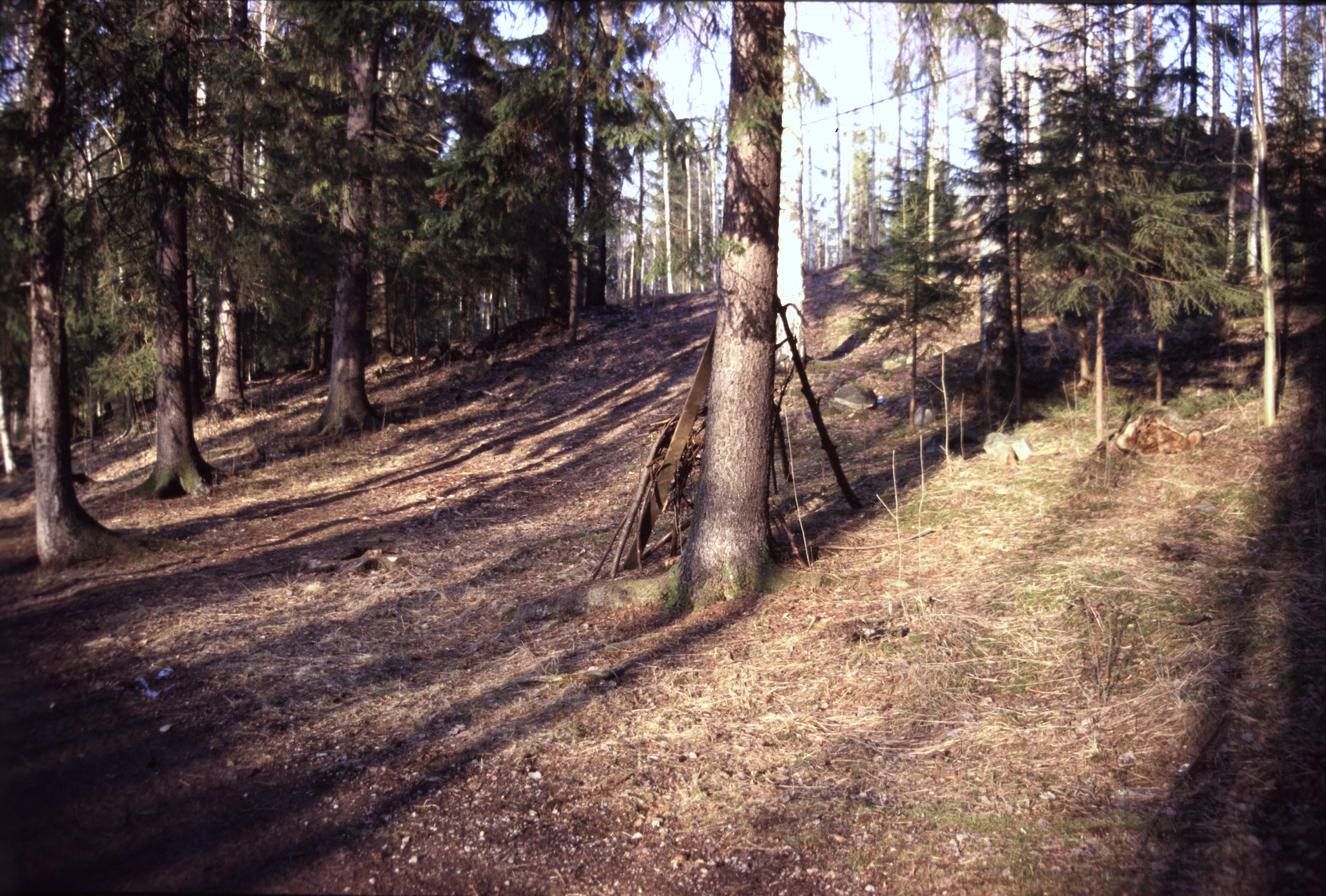 Also I have noticed that an imaginary playground can look like almost anything, so a hut/maja is a living and flexible idea, which is part of the beauty of play, which I have also noticed adults tend to dictate and say what a hut/maja is and is not, where they go wrong instantly. Adults do build temporary shacks/huts, but children don’t leave beer cans, bottles, needles, grocery trash, make campfires, have places to sleep as in real life. I do not manipulate the sites I photograph and do visit the same found huts several times as they do change and get destroyed.