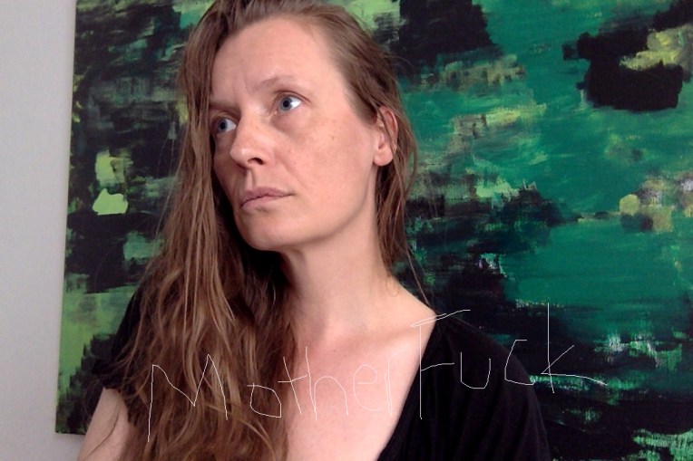 Artist poses in front of her work