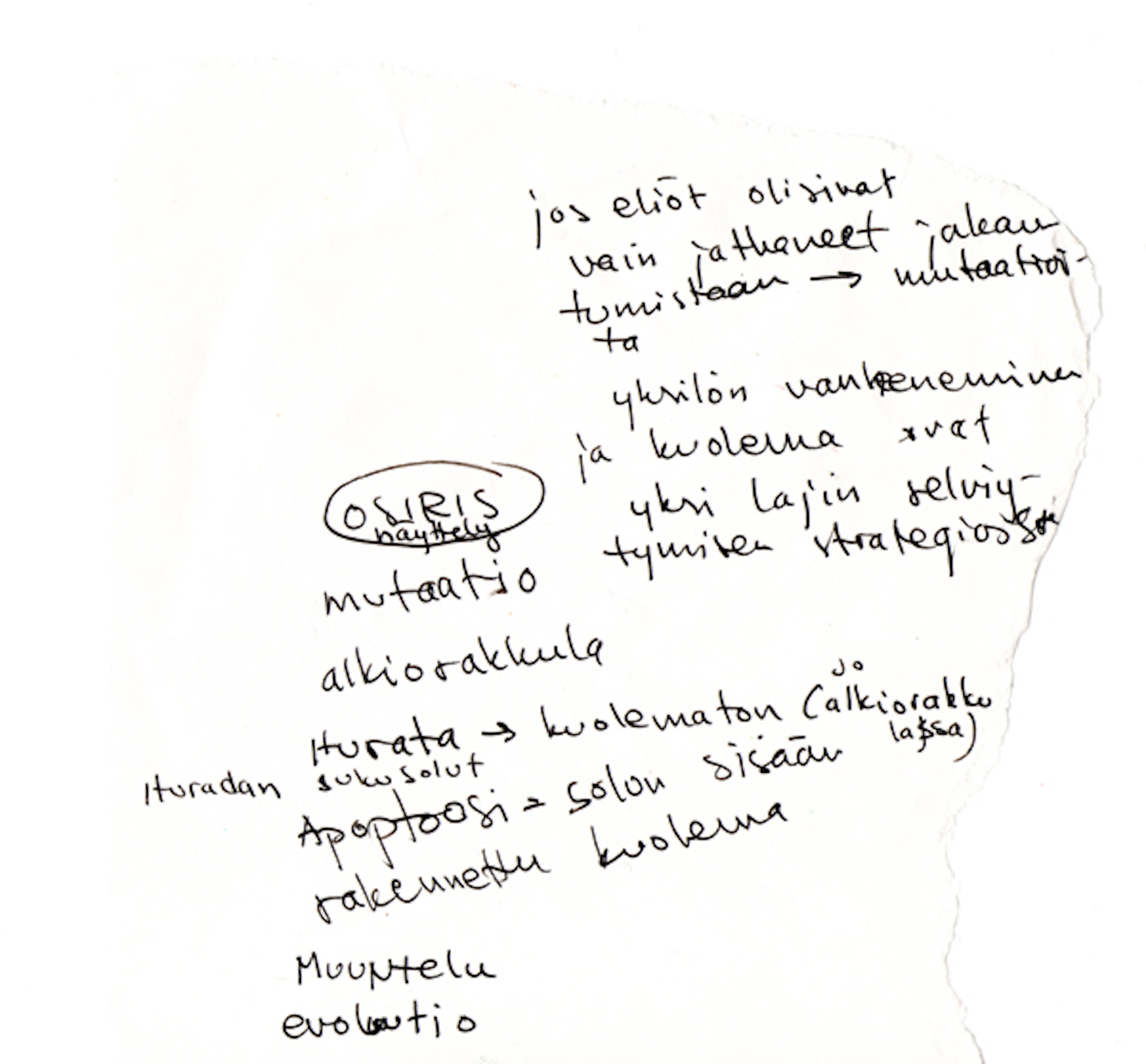 Linjuri-asema vanoineen juovineen uimareineen, päällekäyvä öljyinen ranta, jolle ajaudutaan, josta ehkä lähdetään tai katsellaan silppua tuulessa, asfaltilla, palasia, kasseja ja laukkuja, joita yhdistelemällä saa kollaasin. Katselemassa ihmisiä ja muita laitureita, välillä sydämetön kassiton kengätön hatuton silmätön kädetön, huomaa kaiken odottavan portaalla, kun on tarpeeksi hiljaa. Sukatta voinnitta pukahtamatta aistimatta matta matta, pölyä ja kiiltoa bussin kyljessä kyljen peittävä mainos, jonka läpi ei näe, mutta valo puskee. Huomaa haljenneen pinnan kuin nahkan ja miettii, minne menisi ja minkälaista samankaltaista pientä ja olematonta löytäisi, jossa olisi joku elävä tuoksu. Missä ajatuksesi on, missä mikin on., järjestys on aikatauluissa ja mainoskuvan konemaisessa layoutissa. En kuvitellut paljon löytäväni, katselin vain ja merkitsin muistiin, miten sulkeutunut voi asema olla, jossa seisoskellaan hiljakseen, jotakin kokemuksellisuutta ja yllätyksellisyyttä hakien kuin dopamiini hit.