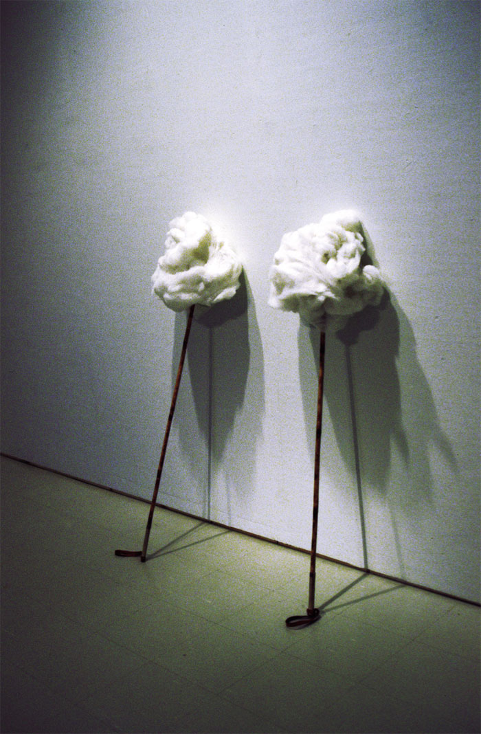 Selällään/On one’s back, sauvat, vanu/skiing sticks, wadding, 2004
