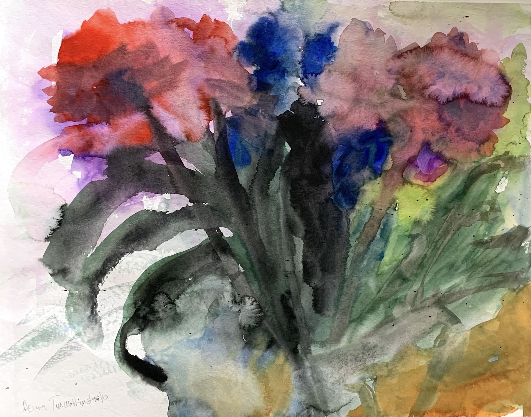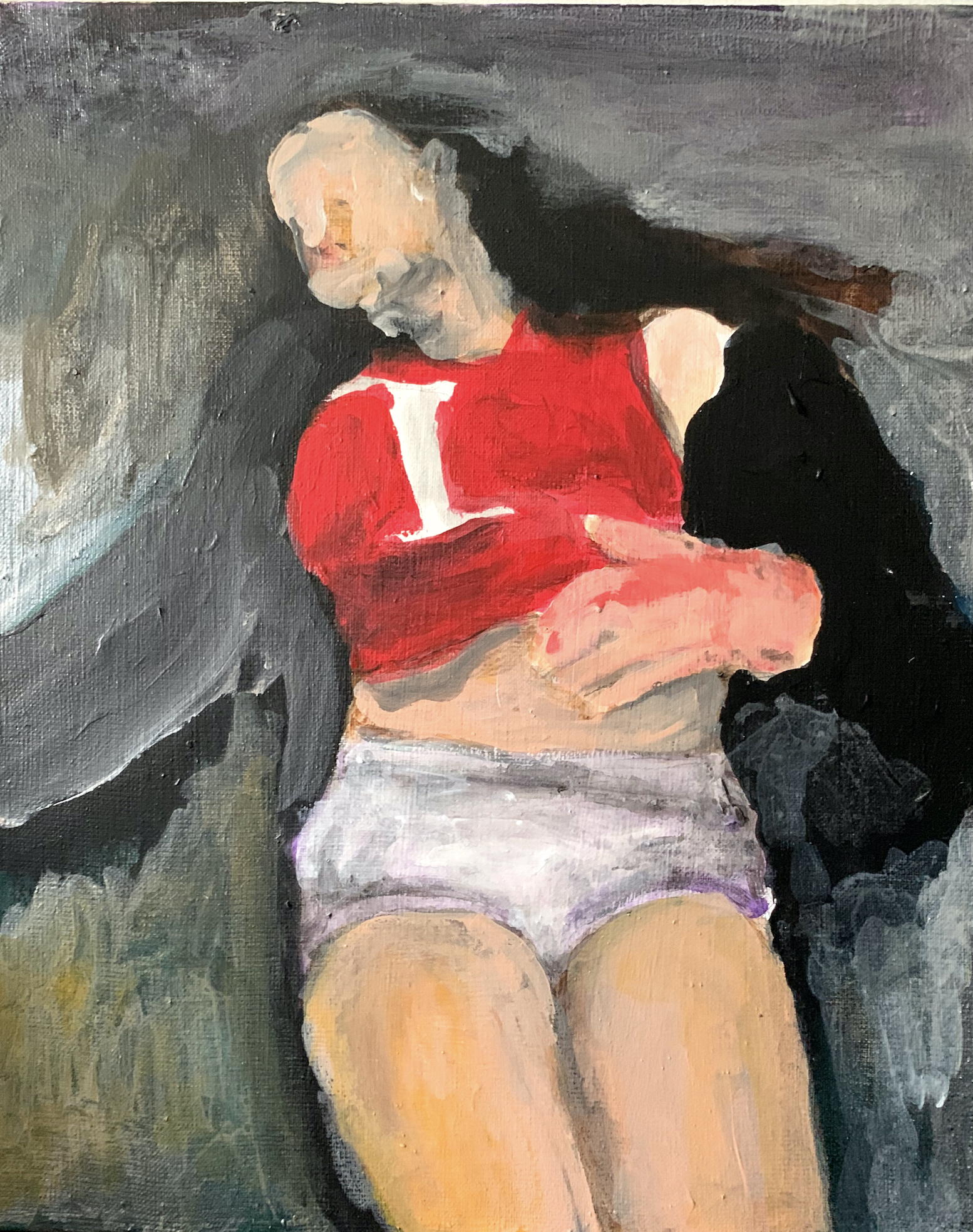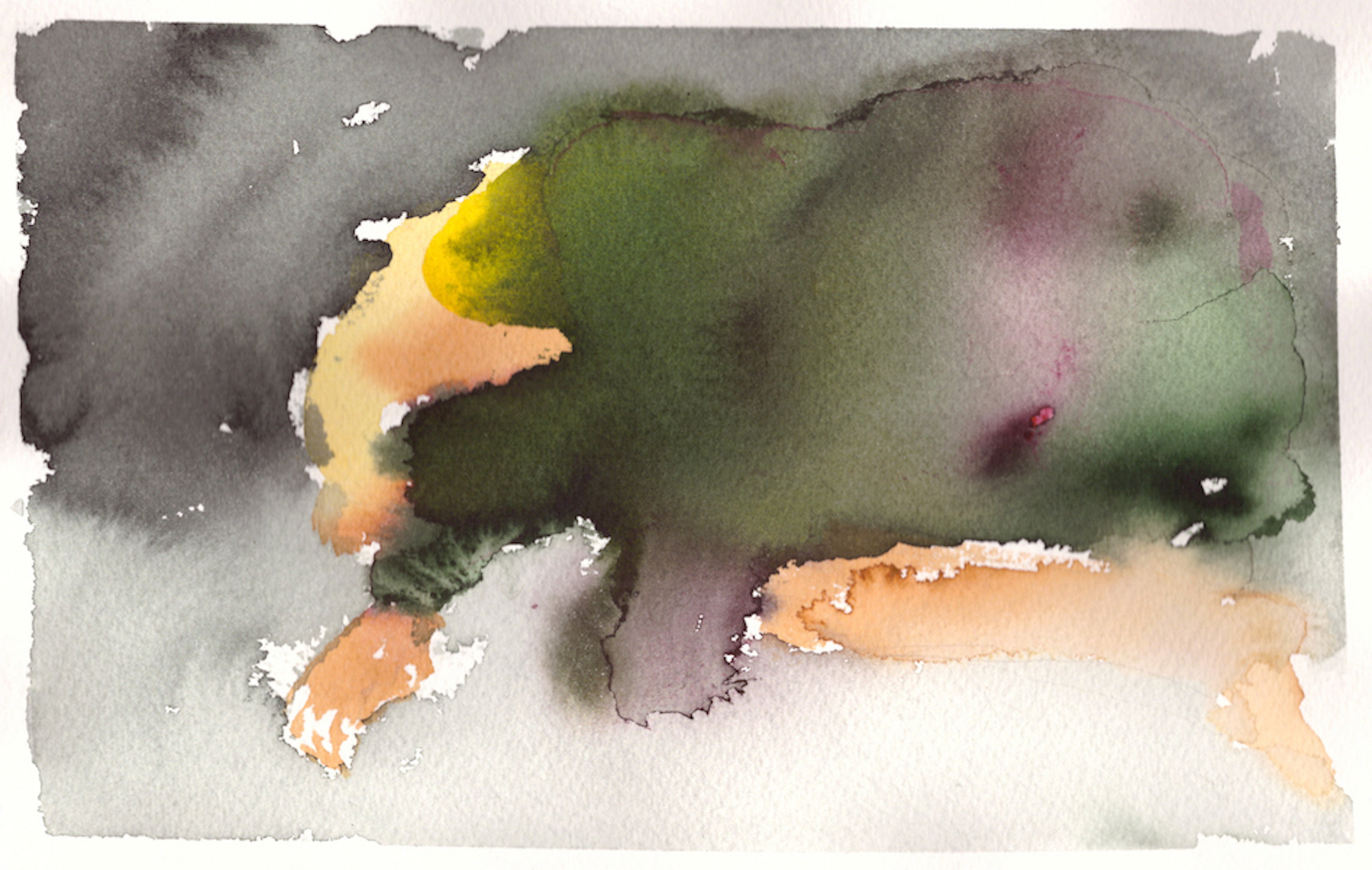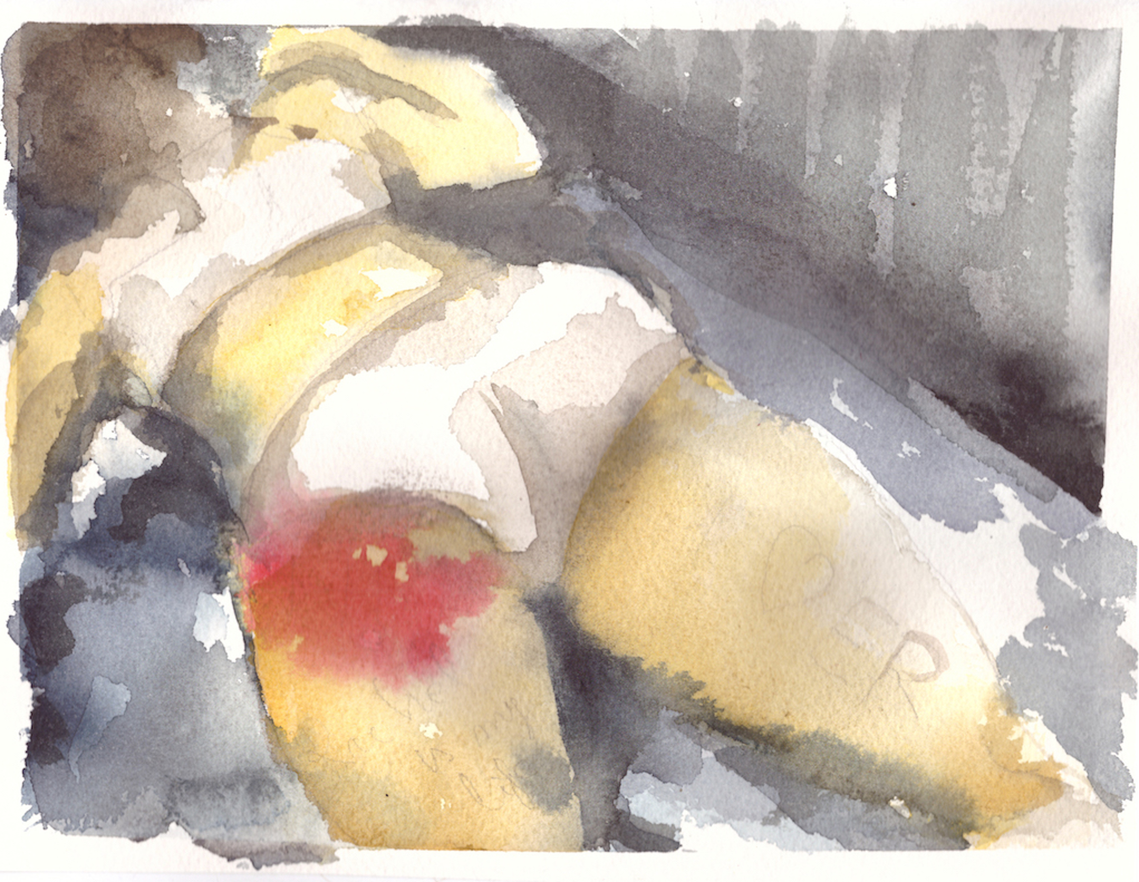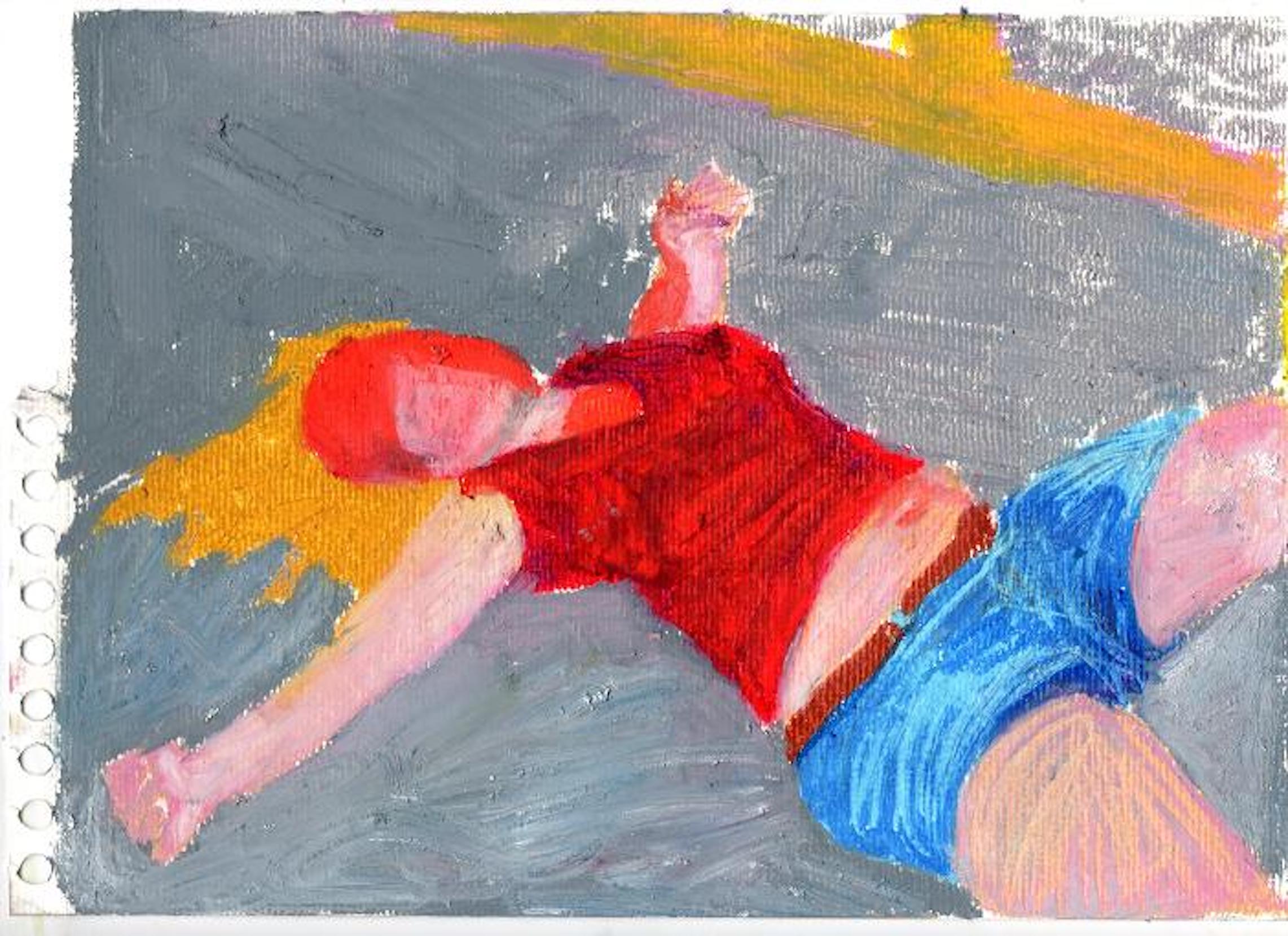 Drunk passed out, oil pastels and watercolor on paper plus acrylic on canvas, 2015-